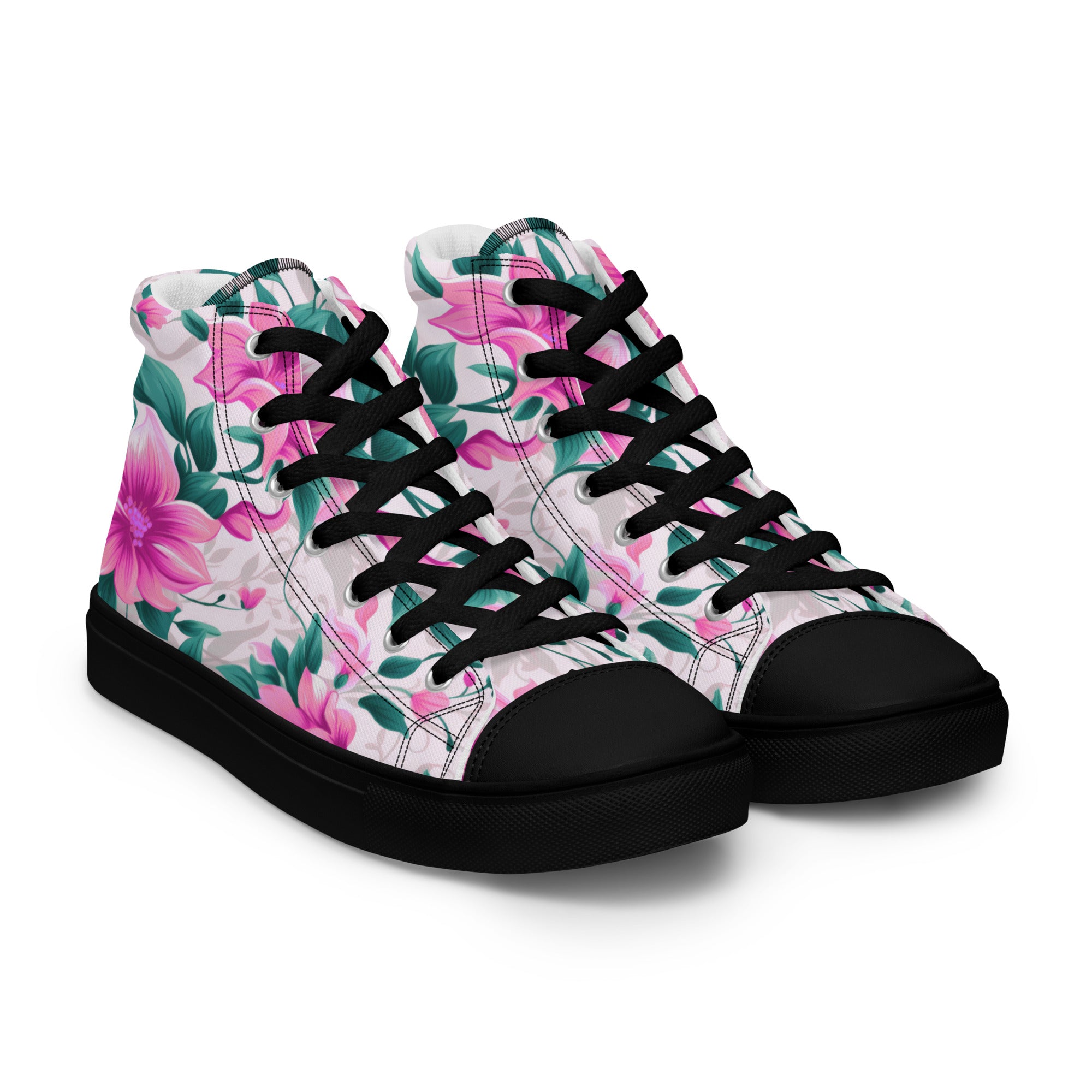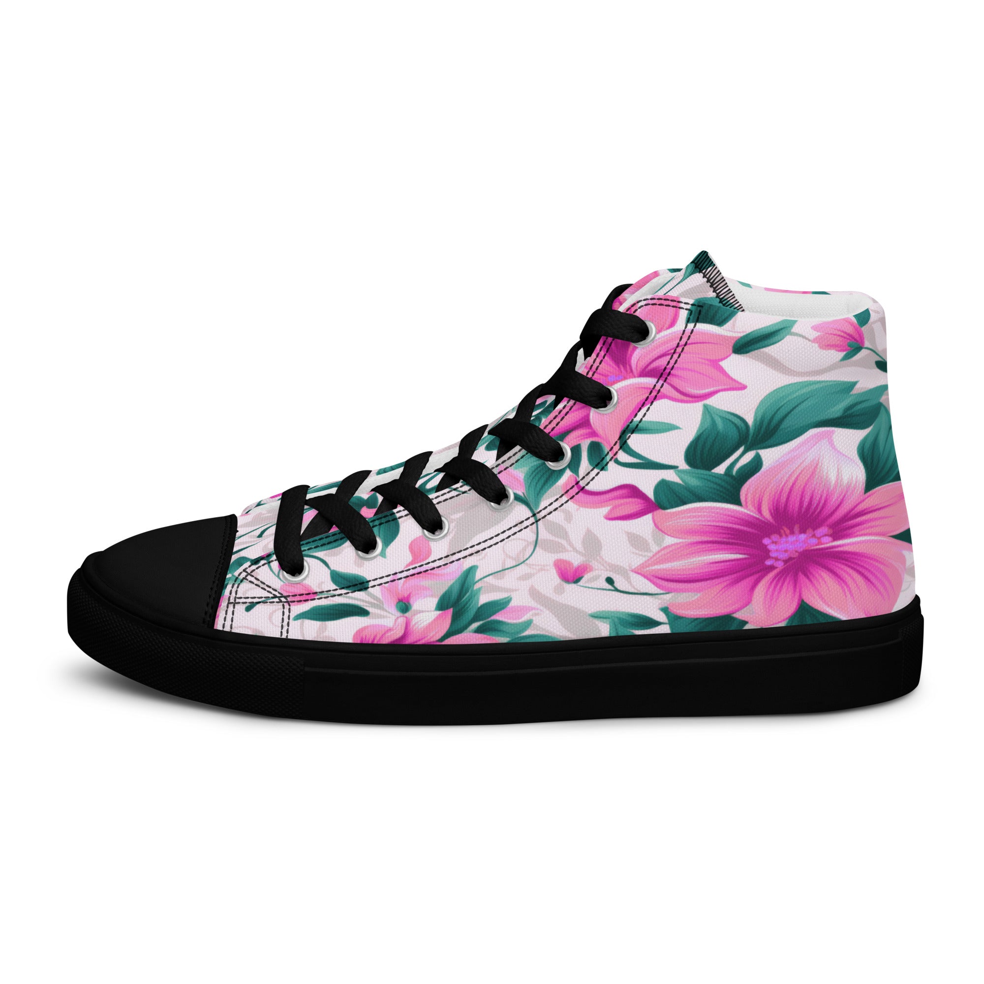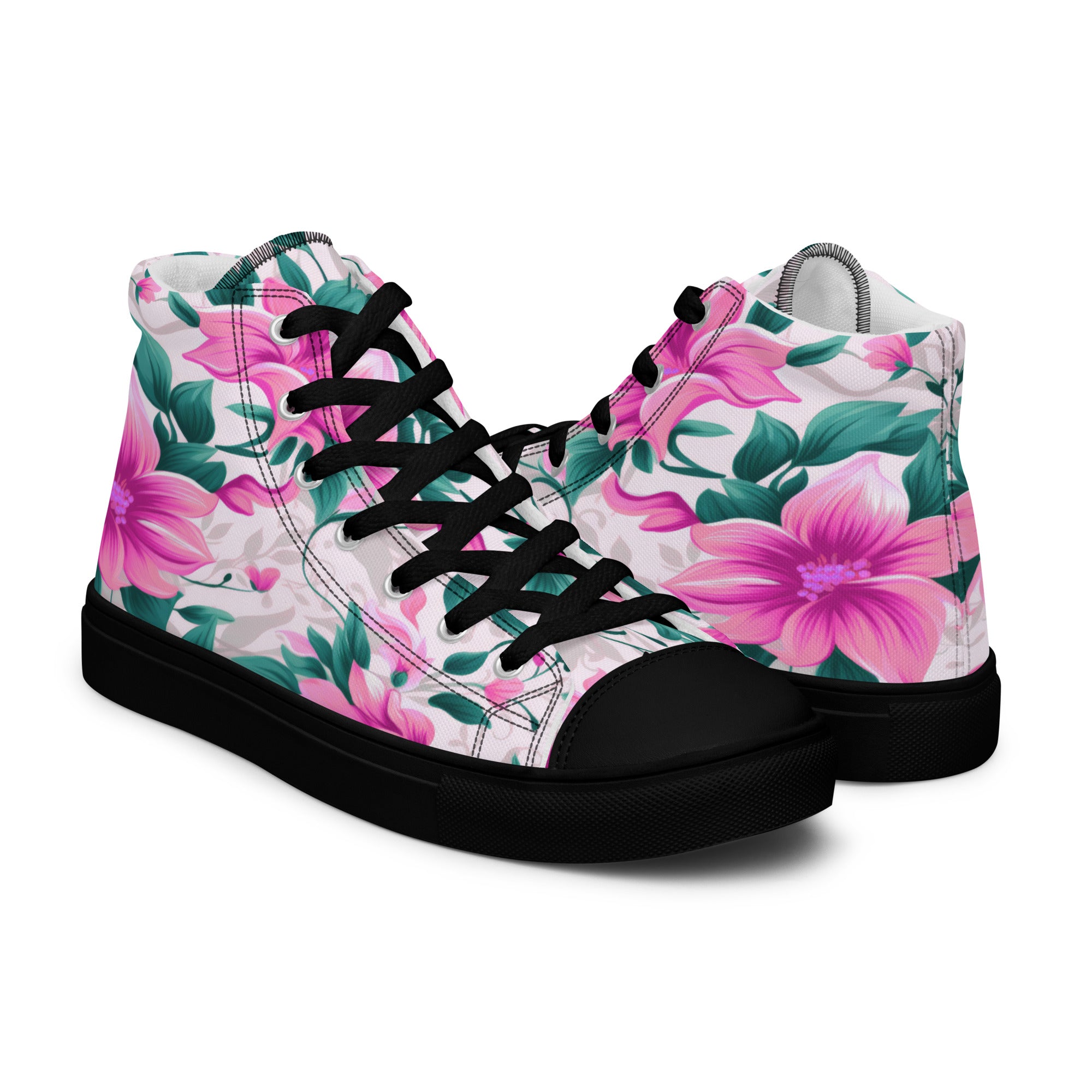 Women’s High Top Canvas Shoes – Pink Floral Print | Size 5–11.5