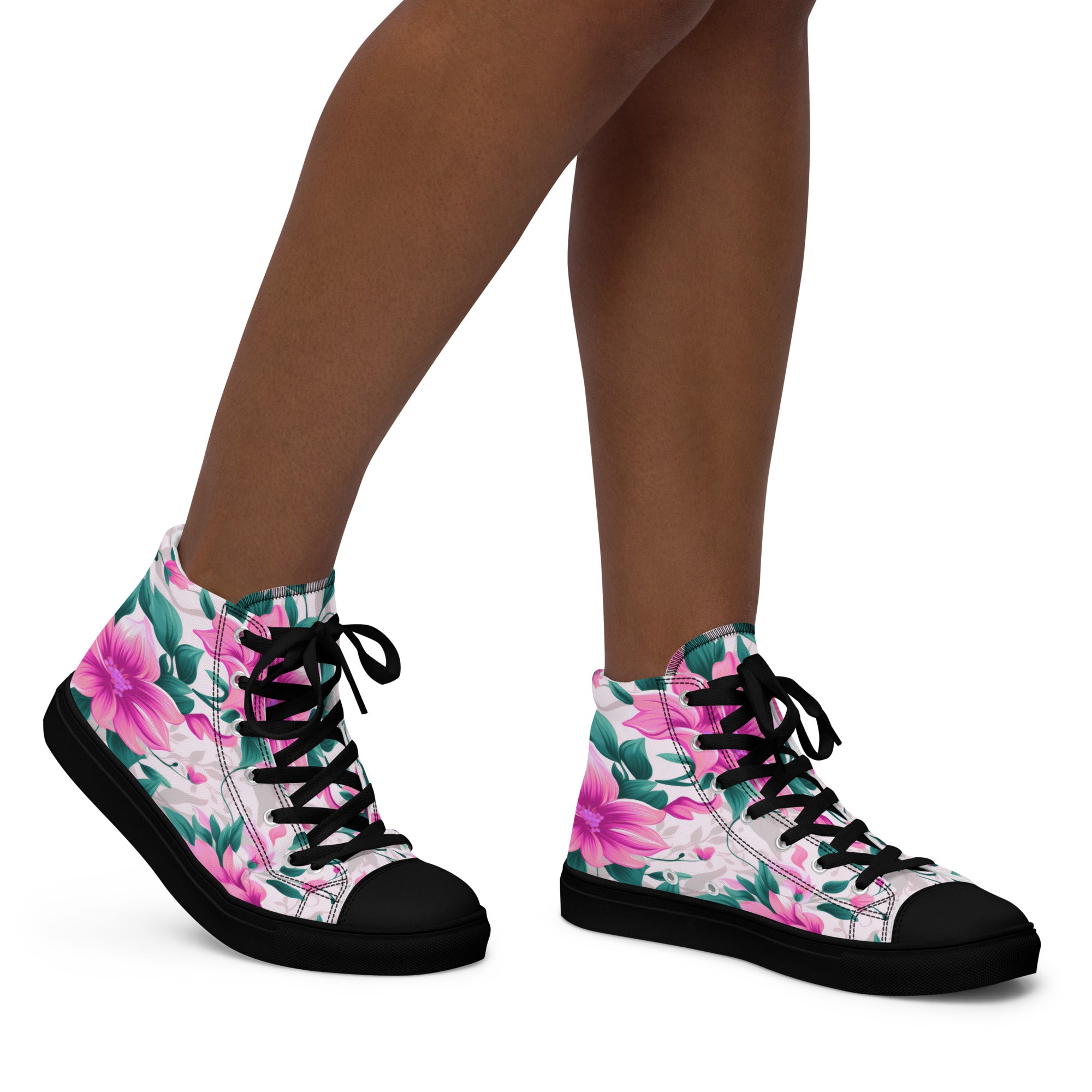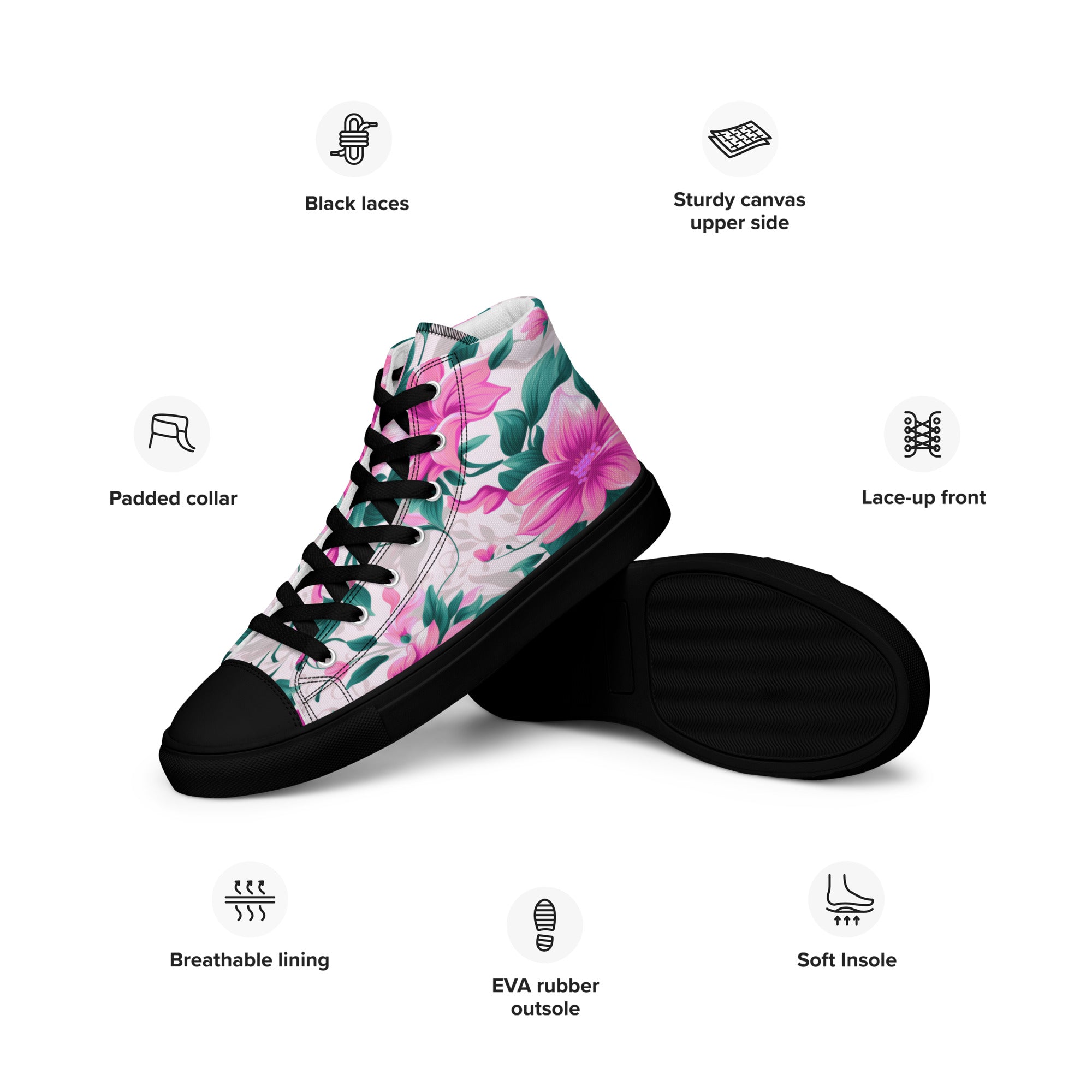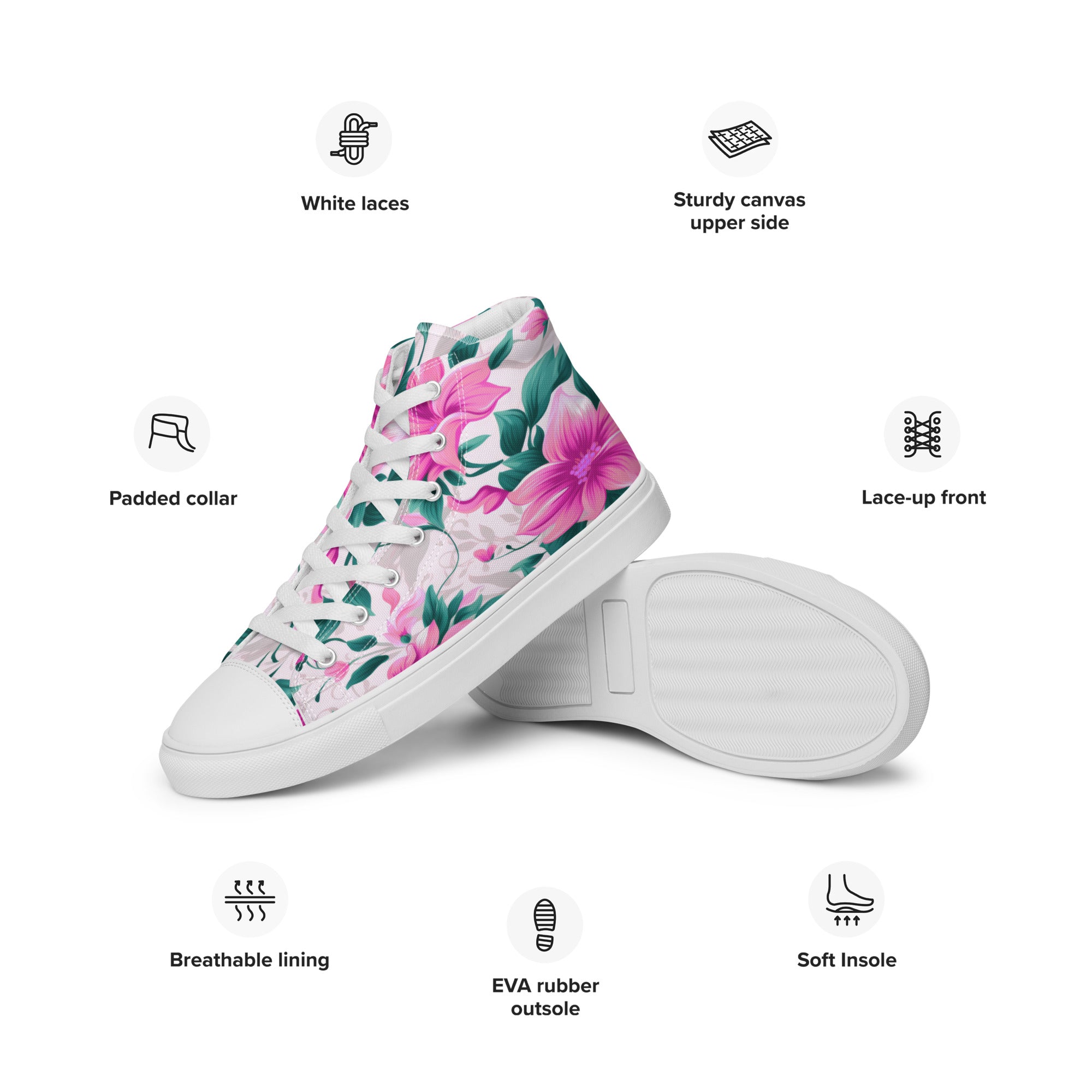 Women’s High Top Canvas Shoes – Pink Floral Print | Size 5–11.5